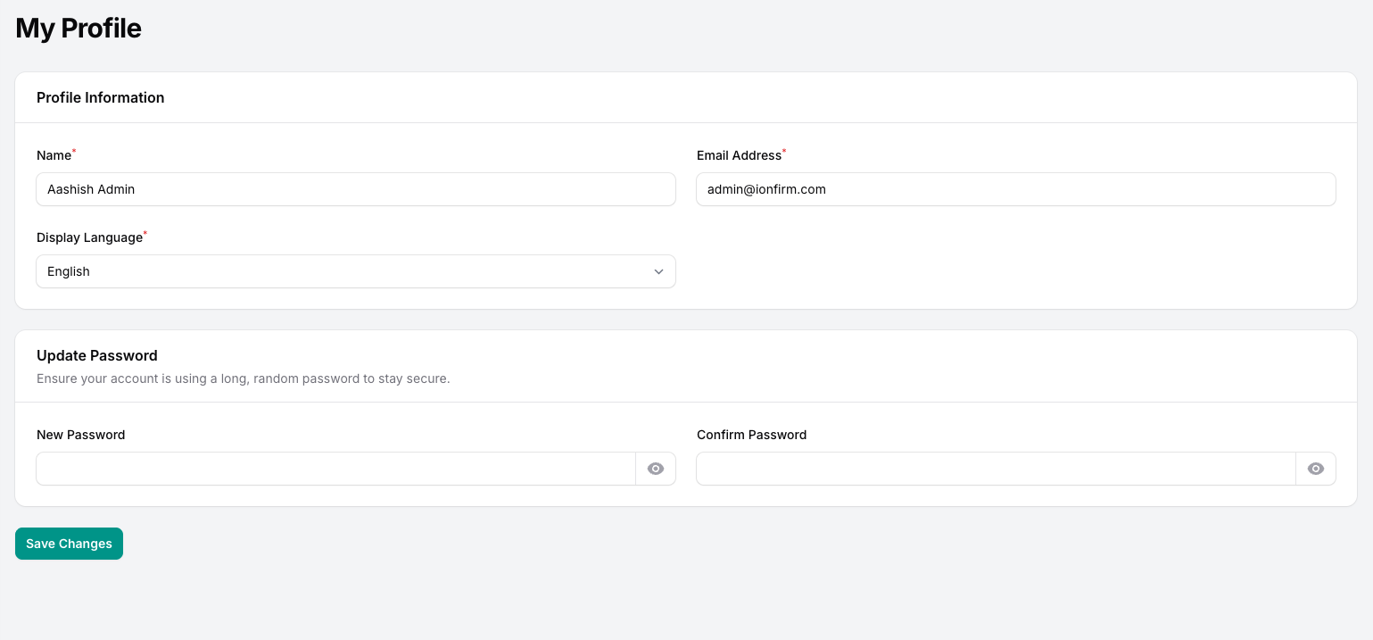 - Security: Change your account password securely.